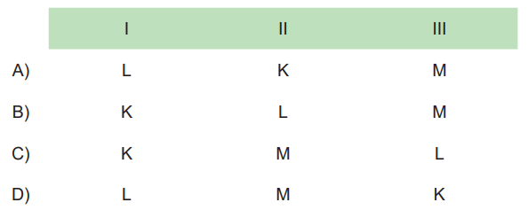 Verilen bu bilgilere göre K, L ve M karışımları aşağıdakilerden hangisi gibi olabilir?