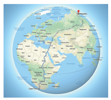 Dünyanın en uzun yürüyüş yolu, Güney Afrika’nın başkenti Cape Town ile Rusya’nın Magadan kentleri arasında bulunan 22387 kilometre uzunluğundaki yoldur.