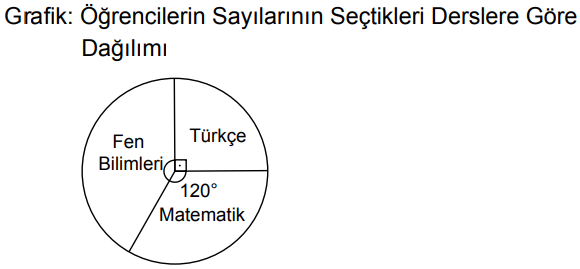 Aşağıdaki daire grafiğinde 24 kişilik bir sınıftaki öğrencilerin sayılarının yetiştirme kurslarında seçtikleri derslere göre dağılımı verilmiştir.