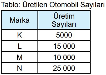 Yandaki tabloda dört farklı otomobil markasının üretim sayıları verilmiştir.