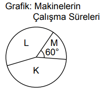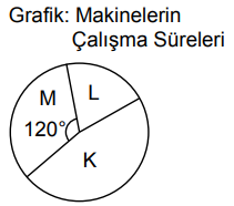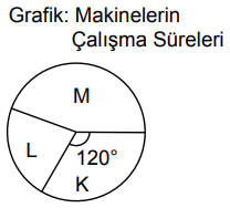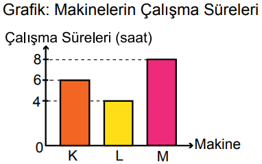 Aşağıdaki sütun grafiğinde bir firmadaki K, L ve M makinelerinin günlük çalışma süreleri verilmiştir.