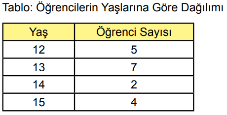 Aşağıdaki tabloda bir sınıftaki öğrencilerin yaşlarına göre dağılımı verilmiştir.