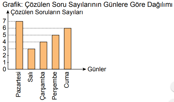 Aşağıdaki grafikte bir öğrencinin beş gün boyunca çözdüğü soru sayılarının günlere göre dağılımı verilmiştir.
