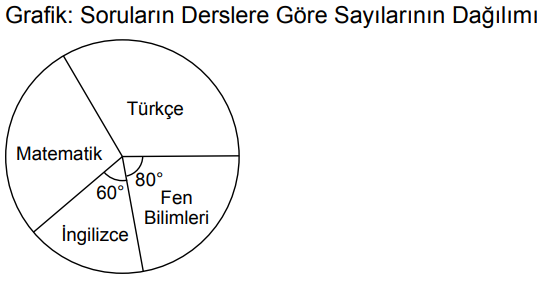 Nisa’nın bir günde çözdüğü 90 sorunun derslere göre sayılarının dağılımı aşağıdaki daire grafiğinde verilmiştir.