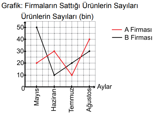 İki firmanın dört ayda sattığı ürünlerin sayıları aşağıdaki grafikte verilmiştir.