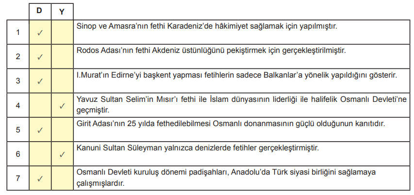 - SB.7.2.2. Osmanlı Devleti’nin fetih siyasetini örnekler üzerinden analiz eder.