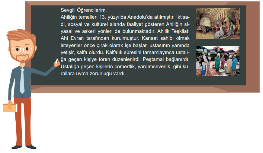 - SB.7.5.4. Tarih boyunca Türklerde meslek edindirme ve meslek etiği kazandırmada rol oynayan kurumları tanır.