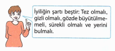 İyilik ancak kimseye duyurulmadan yapılırsa amacına ulaşır. | |