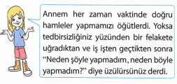 Bir kimsenin yardıma ihtiyacı olduğunda ona hemen yardımcı olmalıyız. | |