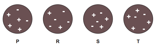 Elektrik yükleri verilen P, R, S ve T cisimleri ile ilgili aşağıdaki ifadelerden hangisi yanlıştır?