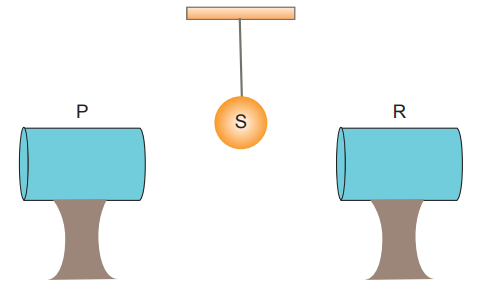 Başlangıçta nötr olan P ve R levhalarının arasına negatif yüklü S küresi etkileşmenin olabileceği şekilde yerleştiriliyor.