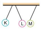 Elektrik yükleri taloda verilen K, L ve M kürelerinin asılı olduğu bir düzenekte, kürelerin konumları hangi seçenekteki gibi olur?