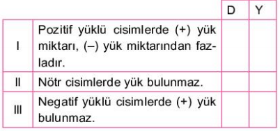 Birbirine sürtülen iki cisim zıt elektrik yükleriyle yüklenirler.