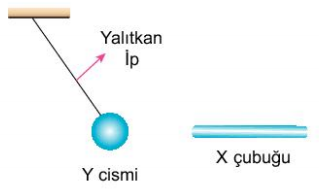 Buna göre X çubuğunun, Y cisminin ve ipek kumaşın yükleri hangi seçenekteki gibi olabilir?