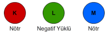 Buna göre, verilen konumda K, L ve M kürelerinin yük işareti aşağıdakilerden hangisi gibi olur?