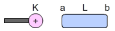 Etki ile elektriklenmeyi inceleyen Saffet, pozitif yükle yüklü iletken K cismini yalıtkan sapından tutarak nötr iletken L çubuğuna şekildeki gibi yaklaştırıyor ve a ile b uçlarındaki yüklerin cinsini belirliyor.