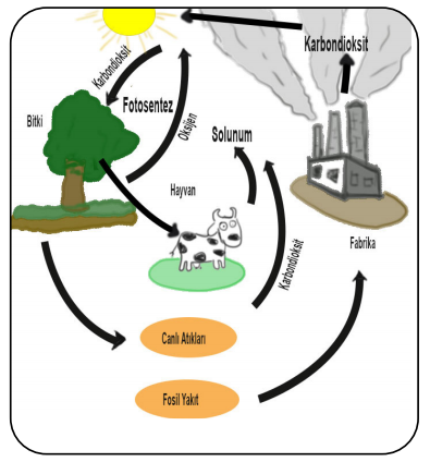 Doğadaki karbon döngüsü verilen görselde şematize edilmiştir.