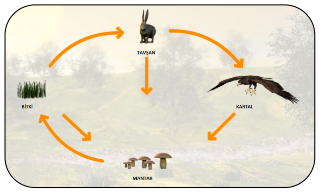 Kartalın vücudunda biriken atık madde miktarı tavşan ve bitkiden fazladır | |