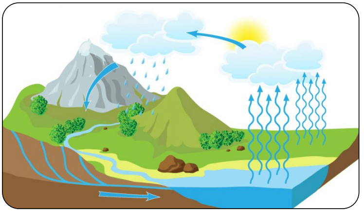 • Yeryüzünde sıvı halde bulunan suyun buharlaşma yoluyla gaz haline geçerek atmosfere karışması, atmosferde yoğunlaşıp yağış olarak yeryüzüne düşmesi, bir kısmı yer altı sularına karışan suyun akarak hareket edip tekrar yeryüzüne çıkması şeklinde olan - - - - döngüsüdür.