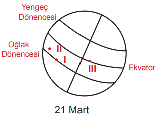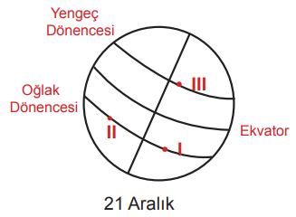 III. 3 numaralı konumda Güneş ışınlarını dik veya dike yakın açılarla alır.