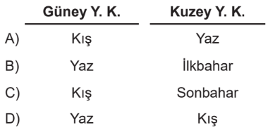 Yukarıda verilen zamanda güney ve kuzey yarım kürede hangi mevsimler görülür?