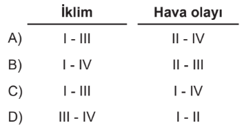 Umut aşağıdaki ifadeleri iklim ve hava olayları olarak sınıflandırmak istiyor.
