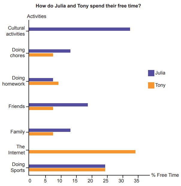 Tony and Julia are school friends. They have similar and different interests and responsibilities.