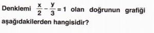 Yukarıdaki doğrulardan hangilerinin grafiği eksenlerin her ikisini de farklı noktalarda keser?