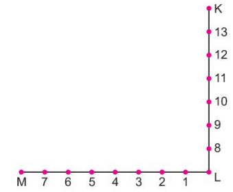 İki doğru parçası eşit uzunlukta parçalara ayrılmıştır. [KL] üzerindeki her bir bölme ile [LM] üzerindeki her bir bölme eşit uzunluktadır. Şekil üzerindeki 1’den 7’ye kadar olan noktalardan 1 tane, 8’den 13’e kadar olan noktalardan 1 tane seçiliyor. Seçilen 2 nokta birleştirilip doğru parçası elde ediliyor.