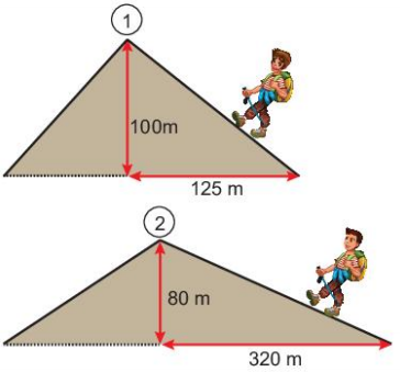 2. dağın yüksekliği 176 m daha fazla olsaydı; 2. dağın eğimi, 1. dağın eğimine eşit olurdu. | |