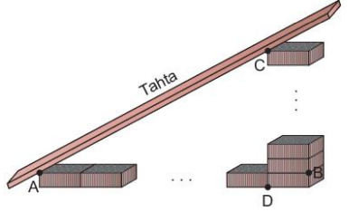 Rampa yapılırken; A noktasından B noktasına kadar 16 tane tuğla düz bir zeminde yan yana konulmuştur. D noktasından C noktasına kadar da üst üste 25 tane tuğla konulmuştur. Bu rampanın eğimi yüksek olduğu için el arabasını yukarıya çıkarmak zor olmaktadır.