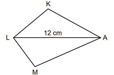 KLA ve LMA üçgenlerinin LA kenarları ortak olarak verilmiştir. Üçgenlerin kenar uzunlukları santimetre cinsinden birer tam sayıdır. Ortak kenarın uzunluğu |LA|=12 cm dir.