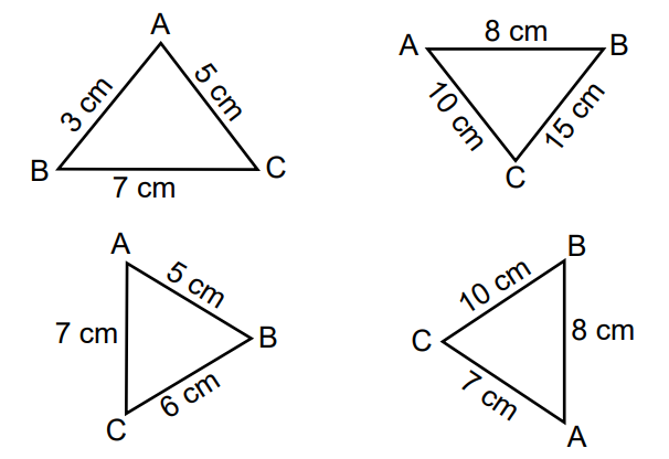 Yukarıdaki doğru parçalarının uzunlukları üzerinde verilmiştir. Dogru parçaları bir ABC üçgeninin kenarlarıdır.