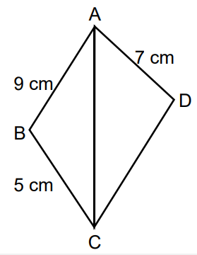 ABC ve ADC üçgenlerinin AC kenarı ortaktır. |AB|=9 cm, |BC|=5 cm ve |AD|=7 cm dir. Üçgenlerin