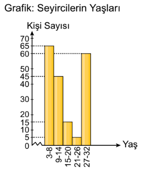 Şekildeki histogramda bir sinema salonunda aynı anda bir filmi izleyen seyircilerin sayıları ve yaş aralıkları verilmiştir.