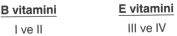 özelliklerinden B ve E vitaminlerine ait olanlar aşağıdakilerden hangisinde doğru olarak verilmiştir?