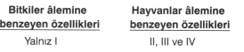 Bu özelliklerden hangileri bitkilere, hangileri hayvanlara benzer?
