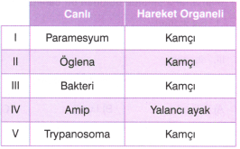 Yukarıdaki canlı-hareket organeli eşleştirmelerinden hangisi yanlıştır?