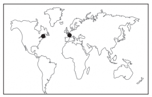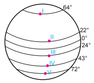 Aşağıdaki haritada Atlas Okyanusu kıyısında, aynı enlem derecesine sahip iki yer gösterilmiştir.
