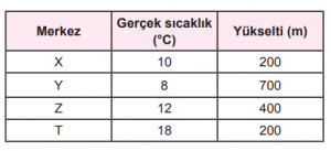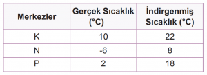 Aşağıdaki tabloda üç merkezin gerçek sıcaklık değeri ile indirgenmiş sıcaklık değerleri verilmiştir.