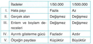 II. ölçeğin ayrıntı gösterme gücü daha azdır. |