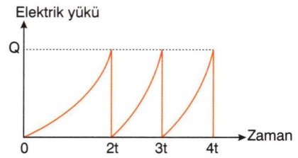Yere uzaklığı sabit olan bir bulutun hava ile sürtünmesi sonucu oluşan yükünün zamana bağlı grafiği şekilde ki gibidir.