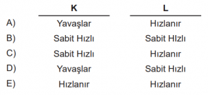 kuvvetinin etkisiyle hareket eden K ve L cisimlerinin arasındaki ip bir süre sonra kopuyor.