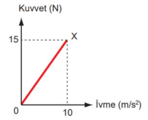 Doğrusal bir yolda hareket eden X cismine uygulanan net kuvvet - ivme grafiği şekildeki gibidir.