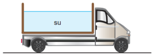Kasasında su taşıyan bir tanker v hızıyla hareket ederken aniden frene basıyor