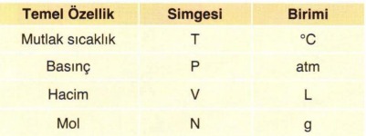 Yukarıdaki tabloda gazlarla ilgili temel özelliklerin simge ve birimlerinden kaç tanesi doğru verilmiştir?