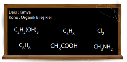 Merve’nin kimya dersinde organik bileşikler ile ilgili tahtaya yazdığı bileşik örneklerinden hangisi konu başlığına uygun düşmemiştir?