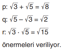 p, q ve r önermeleri için