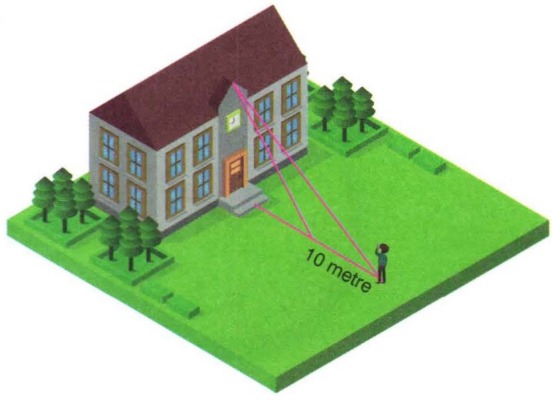 Sonra binaya 10 metre yaklaşarak aynı ölçümü yapıyor ve açının tanjantının 3/4 olduğunu ölçüyor.
