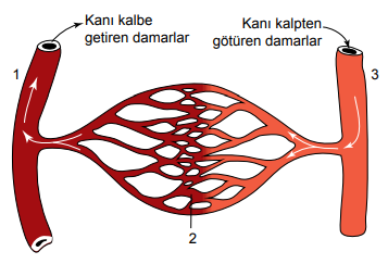 Kılcal damarların atardamarlar ile toplardamarlar arasında yer alması | |